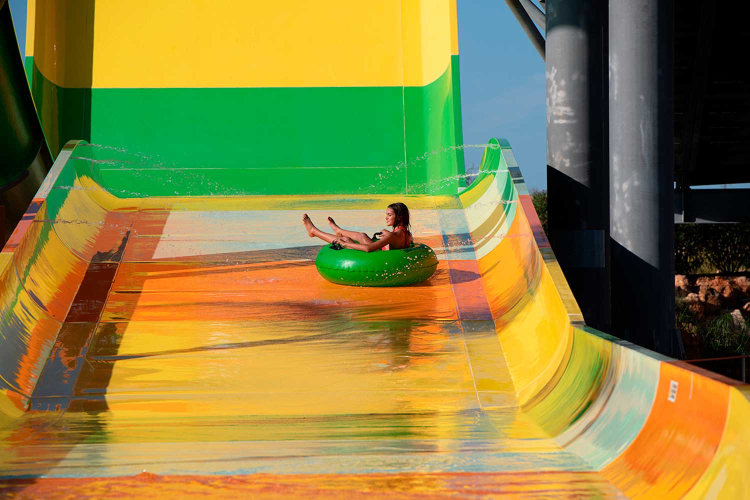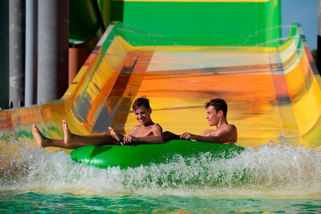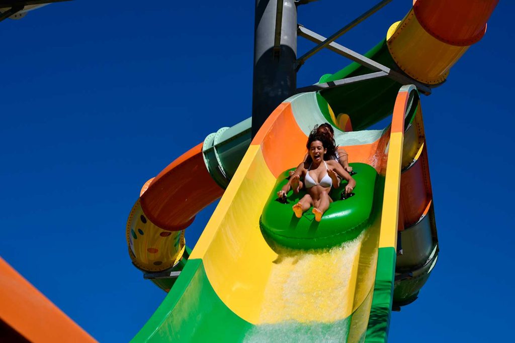 O Boomerang é uma das atrações mais recentes e impactantes do Slide & Splash, combinando elementos visuais marcantes com uma experiência dinâmica em bóia.